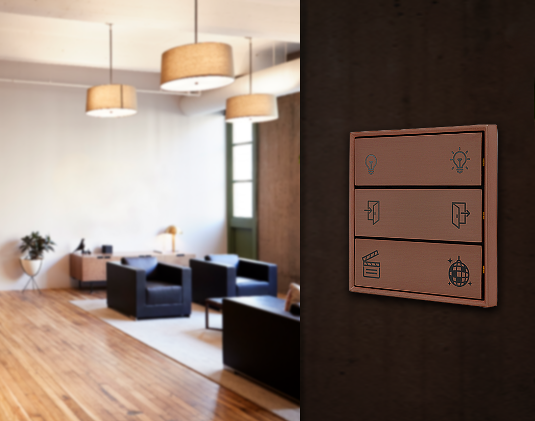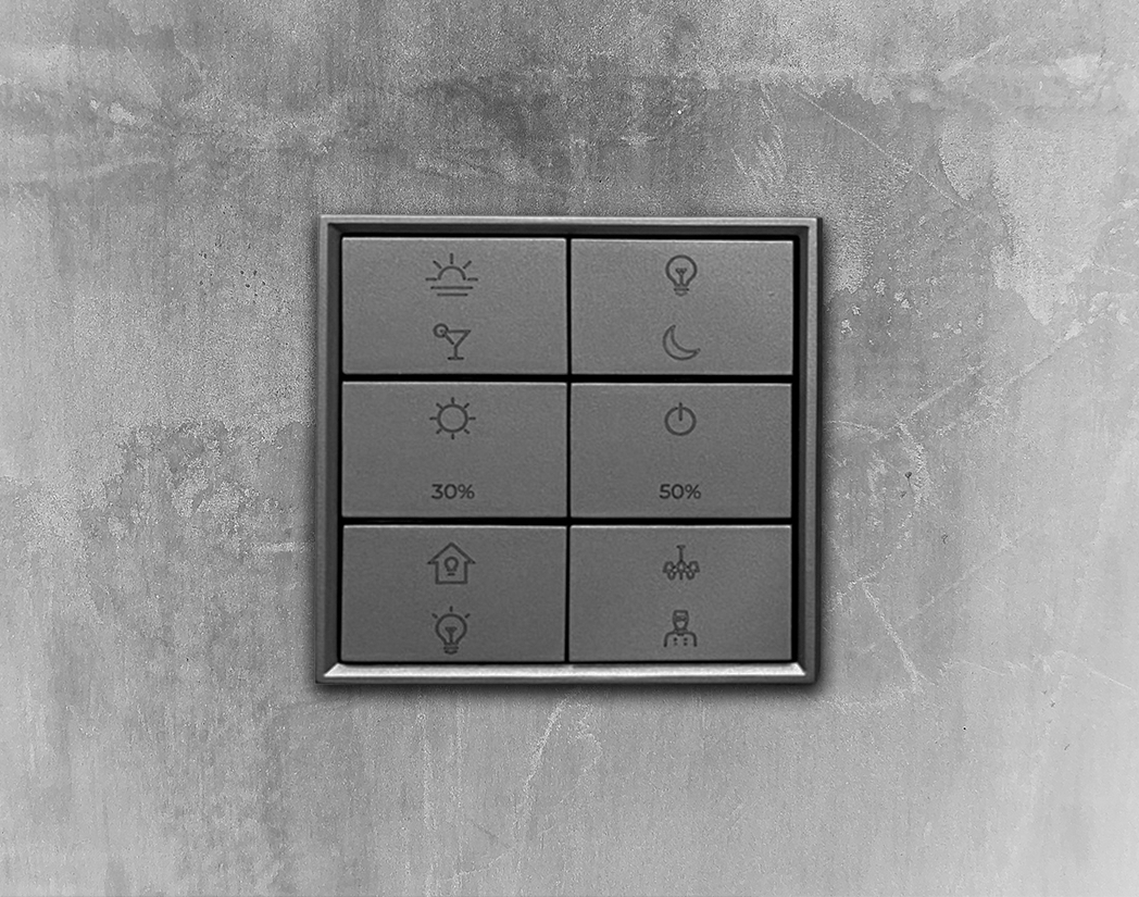 Кнопочный контроллер KNX обеспечивает переключение 3 / 4 / 5 / 6 каналов, управление шторами и жалюзи, диммирование, сценарии и т.д. со встроенными датчиками температуры, влажности и окружающего освещения. Он отличается от традиционных KNX-выключателей благодаря своим интегрированным датчикам температуры, влажности и освещенности.